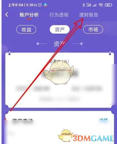3、接下来在打开的页面,点击顶部的理财报告选项卡。