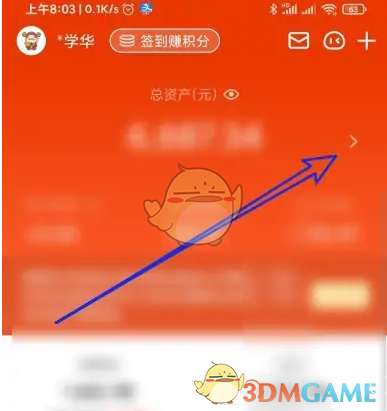 2、然后在打开的我的页面,点击总资产的展开按钮。