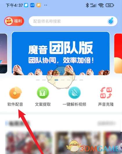 1、打开魔音工坊app,点击主页中的”软件配音“;