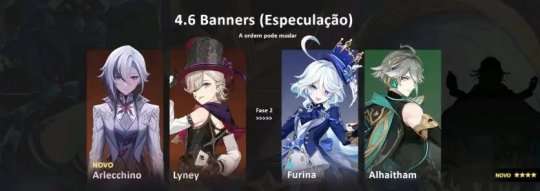 废话不多说,具体大家直接看下图,4.6上半卡池是仆人、林尼,下半卡池是水神芙宁娜、赛诺,图中是艾尔海森大家可以忽略,据说被赛诺插队了,4.7卡池的话将会是双五星限定女角色登场,其中克洛琳德、莱欧斯利在上半卡池,希格雯、妮露在下半卡池,之前提到的第二期混池也会在4.7卡池开放,这算是混池延期了吗?