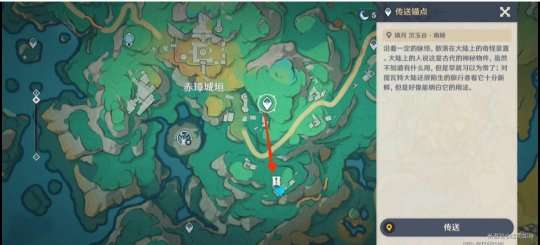 我们传送到赤璋城垣右上角的传送锚点,锚点出来后我们往地图东北方向来到遗迹