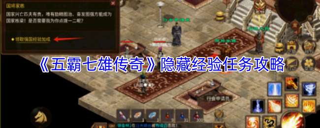 以上就是小编带来的《五霸七雄传奇》隐藏经验任务攻略,更多相关攻略,请关注pk游戏网。