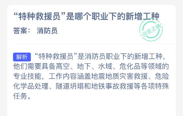 以上就是“特种救援员”是哪个职业下的新增工种?支付宝蚂蚁新村最新答案2025年11月23日,更多精彩内容,请点击关注pk游戏网更新!