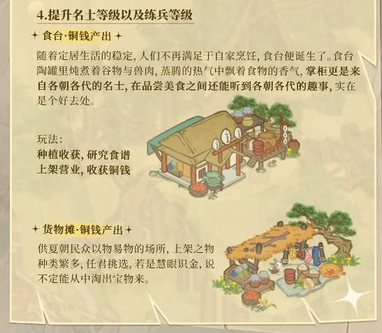 食台是稳定的铜钱产出,大家可以在其中种植收获、研究食谱后进行上架经营,以此来获取铜钱。