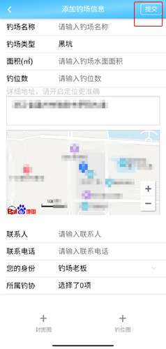 3、输入该钓场的相关按钮,点击右上角的提交按钮就可以了。