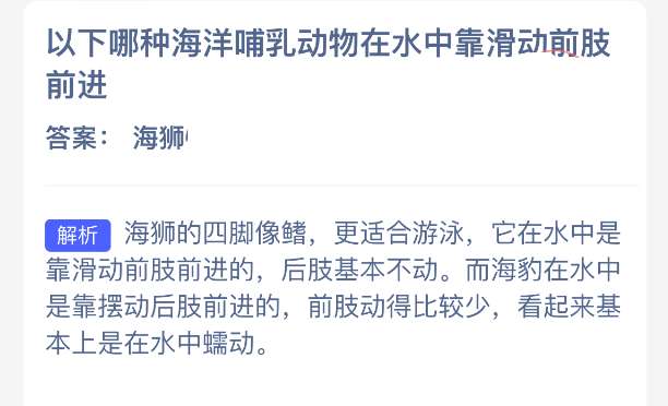 以上就是以下哪种海洋哺乳动物在水中靠滑动前肢前进?神奇海洋今天答案最新2026年1月15日分享,更多相关攻略内容,请点击关注pk游戏网更新!