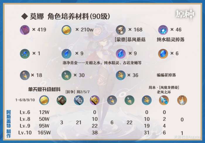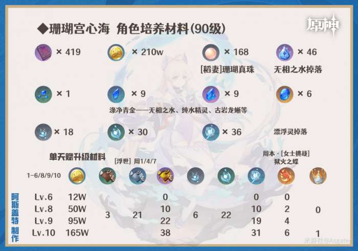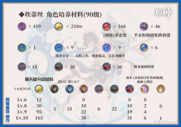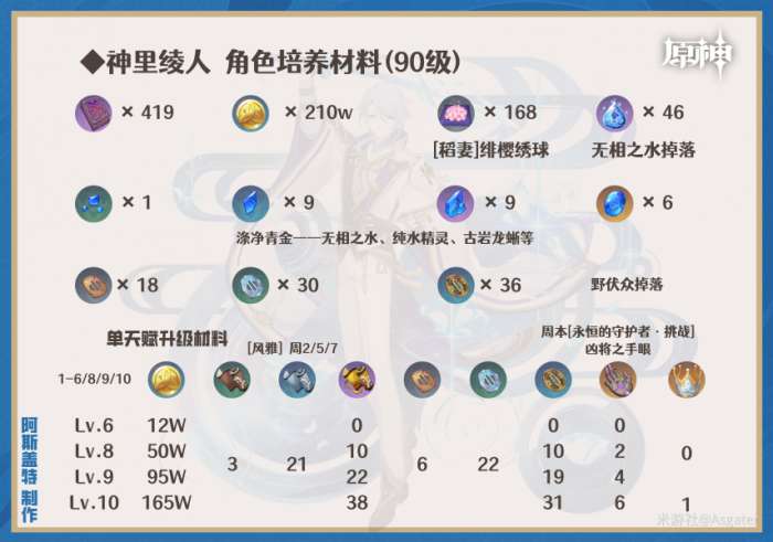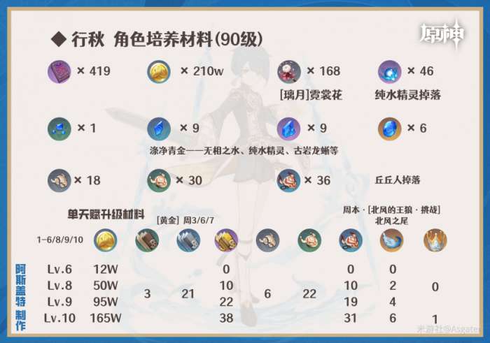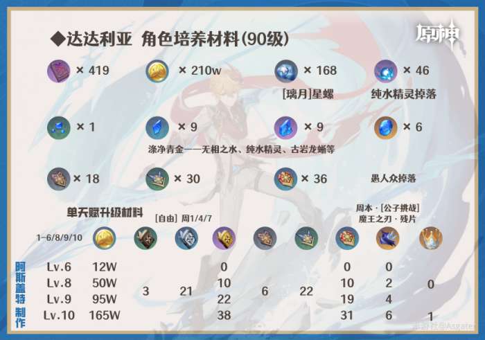 ①技能等级推荐:普攻/重击(9+)>元素战技(6+)>普通攻击(8+)