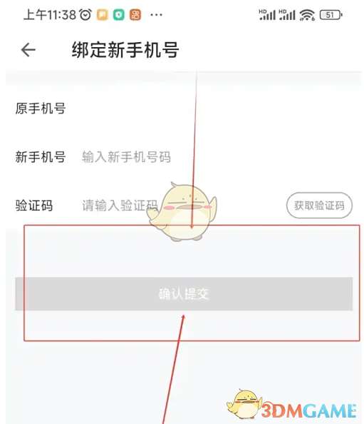 4、在弹出的新界面中输入新手机号和验证码后,点击“确认提交”,即可完成更换绑定手机号的操作。