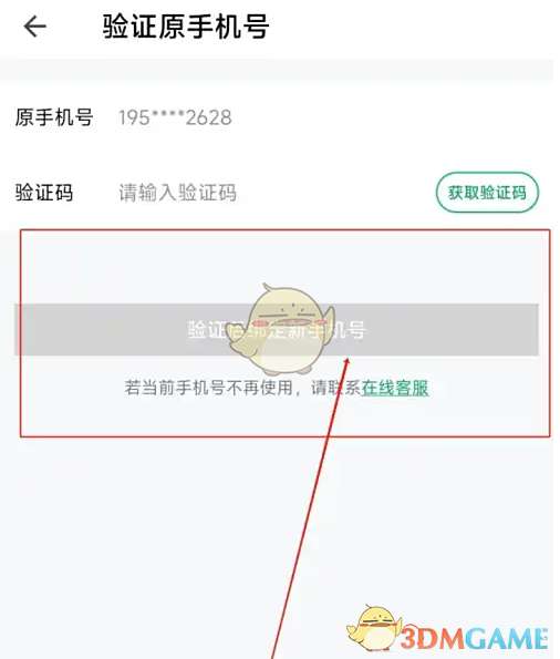 3、在跳转的新界面中输入原手机号和验证码后,点击“验证后绑定新手机号”