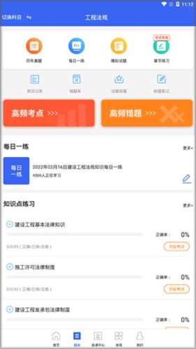 2、【题库】页面为用户提供了许多二建试题方面的学习内容,不仅有历年真题,还有每日一练,你可以在这里完成各类测试、笔记和练习。