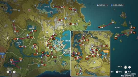 39分布图(1.2新增的39号仙灵 宝箱成就数计入璃月和雪山 仙灵成就数计入璃月)