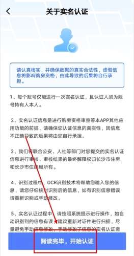 2、接着将所有的内容都了解确认完毕,然后点中下方【阅读完毕,开始认证】就可以开始操作啦。