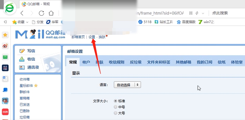 2、在页面上方点击设置。