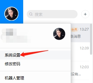 1、打开电脑版钉钉,点击左上角你的头像,选择系统设置。