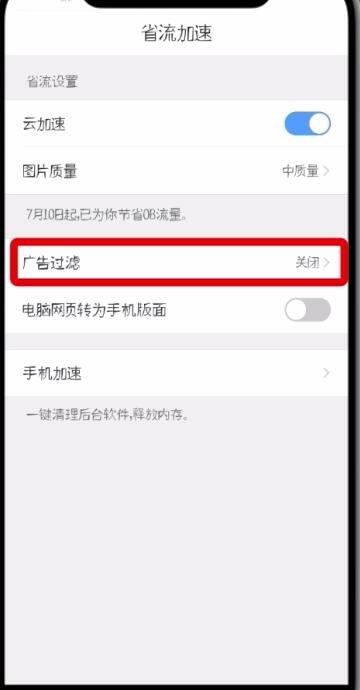 5、打开“广告过滤”开关,这样就可以过滤掉广告了,还能省流量哦。