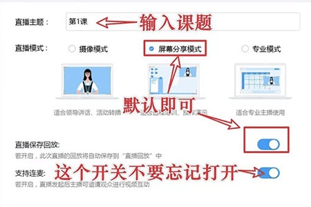 2、对直播的信息进行设置,包括直播主题、直播模式、直播保存回放等等,可以根据实际情况进行设置,设置完成即可点击下方的“创建直播”按钮。