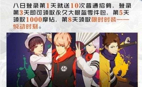 首日登录送10次普通招募,登录第3天即可领取永久大眼盔零件包,第5天领取1000摩钻。第8天领取限时时装-悦动时刻。