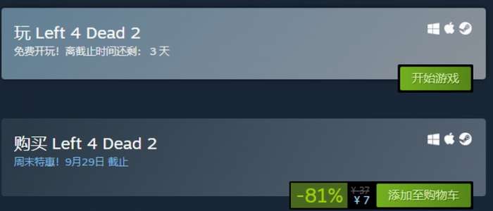 软件提交 专题合集 热门手游今日(9月25日)《求生之路2》大型DLC“背水一战”已免费上线,这款DLC是V社授权由L4D社区玩家制作的,包含新战役新地图新成就等。《求生之路2》在Steam上还开启了促销活动以及免费周末试玩。游戏原价37元,现在仅售7元。
