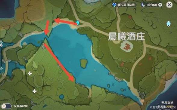 这个路线没有争议把,注意别被丘丘射到就行(绿色位置)。