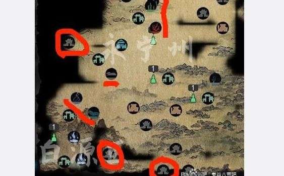划横线的就是六处灵气,里面会有小怪来找你干架(送),一次会掉十几到二十几的灵气碎片,凑够了一百片去城里找工坊可以升级成完整的,但是这种方式纯度不高,