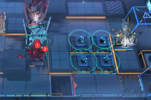 开局部署令(向上)在下图所示位置,然后如图所示位置部署小龙1(向下) → 小龙2(向左),然后开启令技能