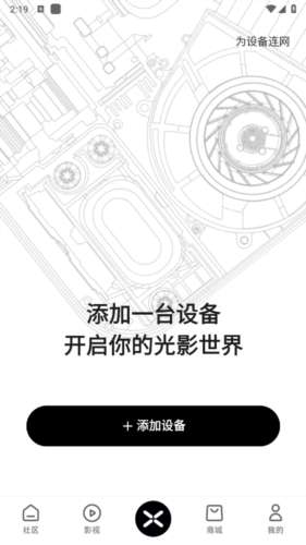 1、确认极米投影仪与手机连接同一个网络,打开手机的极米无屏助手,选择【爱机】,我们得到下图界面。点击中间【添加设备】,点击添加设备进入下一个页面。