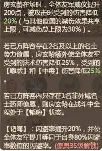 技能“韬光养晦”提供群体减伤、法术降伤,并大幅提升自身生命上限,触发后还能为全体友军增加闪避率。