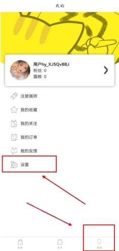 1、在约稿猫app【我的】里面,看到【设置】的选项并进入;