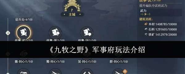软件提交 专题合集 热门手游九牧之野军事府怎么玩?在九牧之野这款策略手游中,主城建设与部队战力发展相辅相成。除持续招募武将、组建多支远征队伍外,玩家必须重视核心建筑的规划与升级。其中,军事府作为主城七大关键建筑之一,直接关系到单支部队的兵力承载上限,是影响开荒进度、资源获取及PVP对抗能力的基础性设施。本文将系统解析该建筑的核心价值与升级策略,帮助玩家建立清晰的发展路径。
