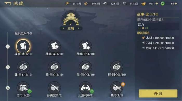 高效推进军事府等级的前提,是优先完成主城升级。当主城处于6级阶段时,应集中资源冲刺7级大本营,此举不仅开放军事府,还将同步解锁校场、铁匠铺等其他核心功能建筑。进入7级主城后,推荐采用“军事府→兵营→科技”的升级顺序:先将军事府升满至7级,再拉满兵营等级,最后投入资源研发兵种相关科技。此节奏可确保兵力成长曲线平滑,避免因某项指标滞后导致7级地攻坚失败。