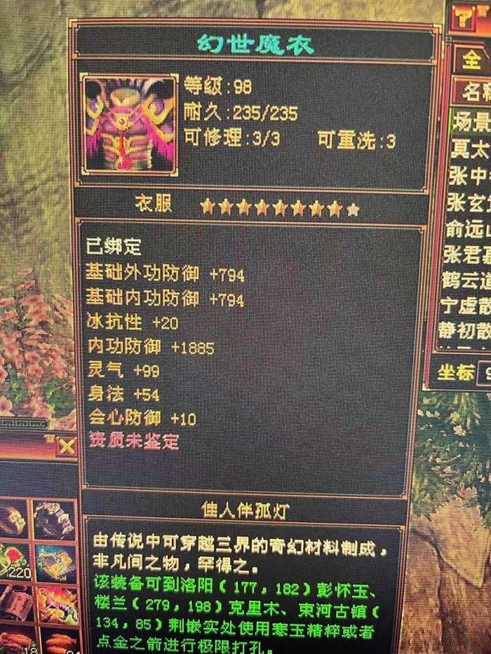 最后这个衣服也是最近老玩家们的投稿:冰抗、内功防御、灵气、身法和会心防御!