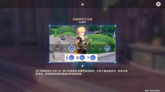 在「声韵律动大交流」中,旅行者需要在音频节奏空缺处,从若干备选音符中,选择合适的音符,使其能够和原哼唱曲目的旋律匹配。