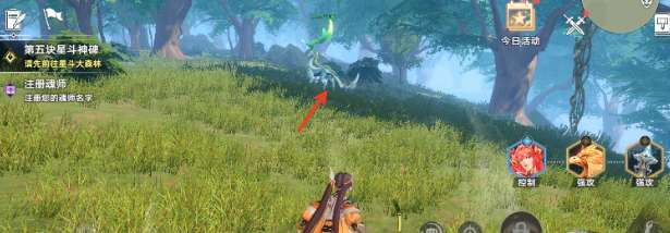 第一只是在诺丁城地图左下角,如图所示“密林西部”传送点的左侧,给大家画了一个标记,追踪这个标记的方向就能找到这只鹿了,体型很大的绿色鹿,在树林里还是能轻松发现的,击杀掉卤阿鹿之后会掉落3张武魂觉醒券。