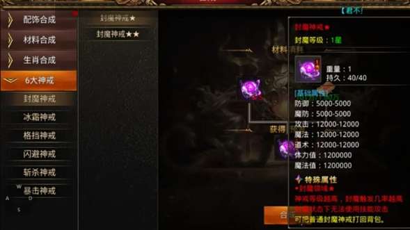 例如5级封魔神戒可压制5级及5级以下封魔神戒,因此神戒等级越高,自身战斗力越强升级特戒优先级:斩杀>封魔>暴击>冰霜>格挡>闪避