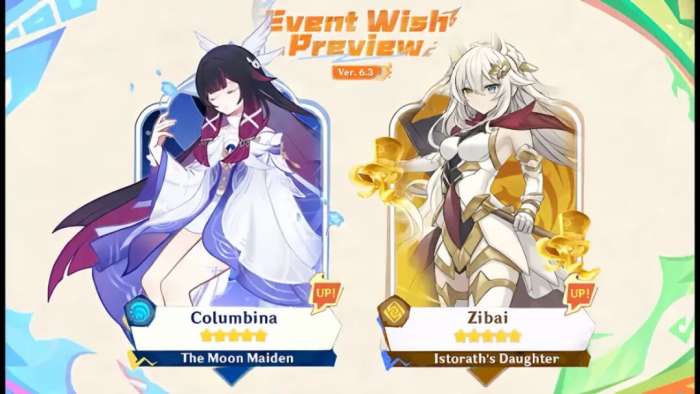 就消息汇总来看,6.3卡池上半是少女哥伦比娅入池,下半是白马仙人入池,新四星叶洛亚上下半顺序未知,6.3卡池两位五星复刻角色,丝柯克大概率在上半复刻,下半是爱可菲复刻。