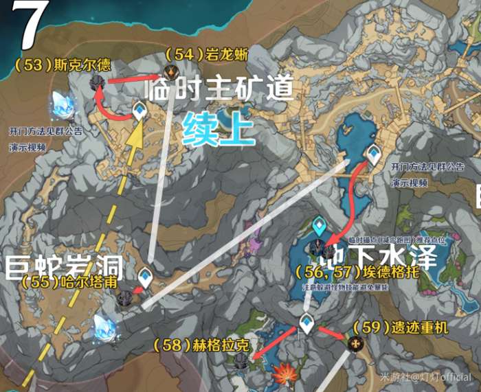 关于传送顺序的说明:稻妻-龙脊雪山-璃月-须弥-枫丹-渊下宫-层岩巨渊:地下矿区