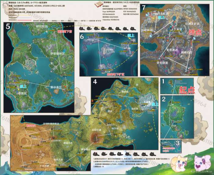 路线细节展示:稻妻-雪山-璃月-层岩