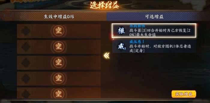 8、幻境探险中有许多类型的增益,需要根据出战忍者的技能效果和特性,选择更加适配的增益,能达到事半功倍的效果;
