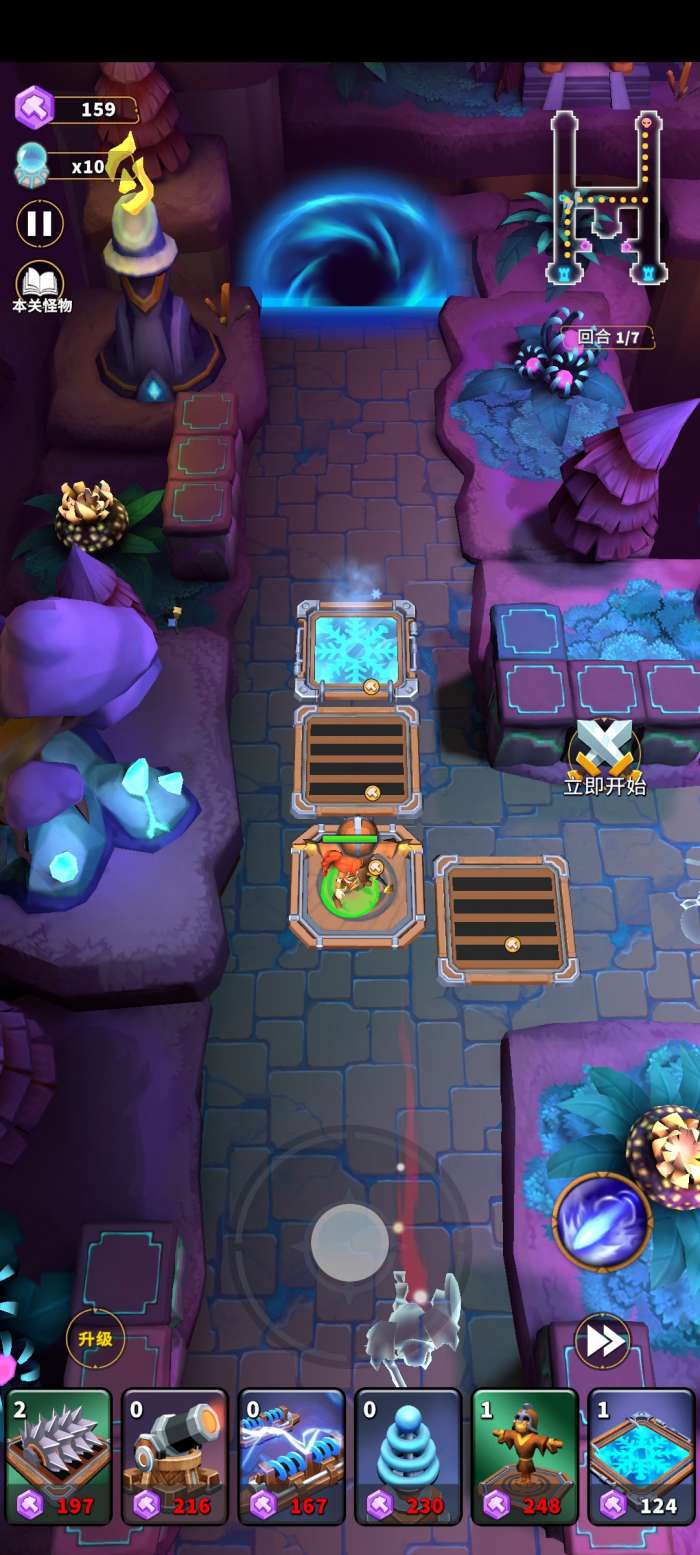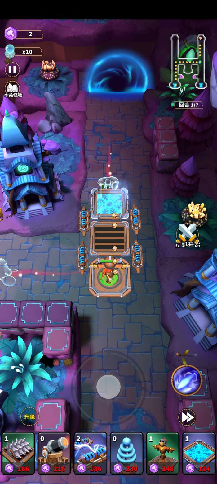 大概思路就是这样,更细致自己在游戏内变通,输出主要靠切割机,冰和雷陷阱都是辅助,炮塔发育起来要升2星出4个以上经济太高,不适合前期过度。箭塔前5章可以过度开局,这个图我目前等级打不动弱点雷的怪。