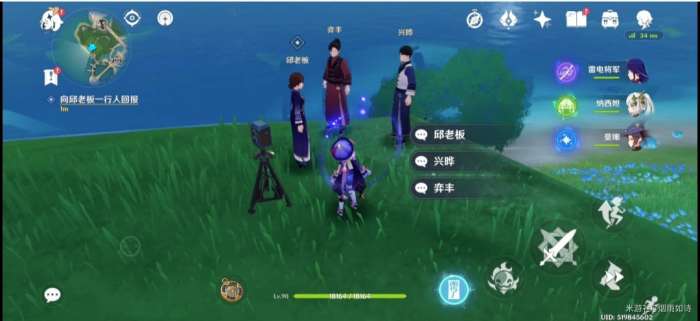 然后我们往北方向走,击败四只丘丘人,帮助邱老板取回映影机