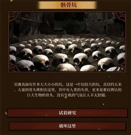 1.试着研究——头脑≥30,获得史前的化石×1;头脑<30,无事发生