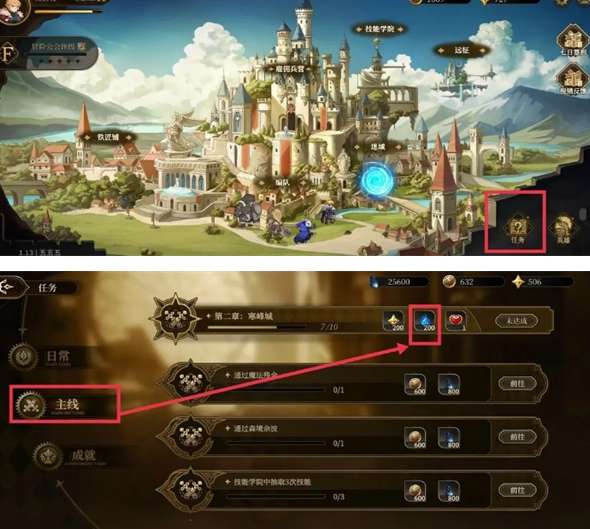 3、点击任务,找到主线任务,在主线任务中可以看到有技能点奖励的任务,完成就可以了