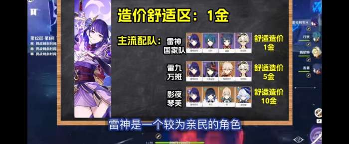 推荐一雷国二雷9万班,三影夜琴芙, 但不推荐第三个配对,一个队伍里站三个强力角色,并且舒适度不如雷国,主要讲一下第一种配对, 第一种配对圣遗物手法合适的情况下,可以做到大招不间断,超载,感电蒸发三种反应嘎嘎乱杀