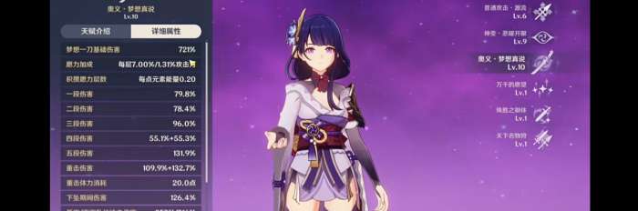 元素爆发有两部分,首先是雷电将军的一刀,其伤害会随愿力提升。其次是梦想一心,使用无想一刀后进入持续8秒的梦想一心状态,此期间影的普攻伤害将转化为无法被其他元素附魔所覆盖的雷元素伤害。因此,在这个状态下普通攻击伤害会被视为元素爆发伤害,而不是物理攻击。此外,这个状态下抗中断效果会提升,并且攻击敌人可为队伍中的其他角色回复能量。因此,不必去提升影的普攻能力。