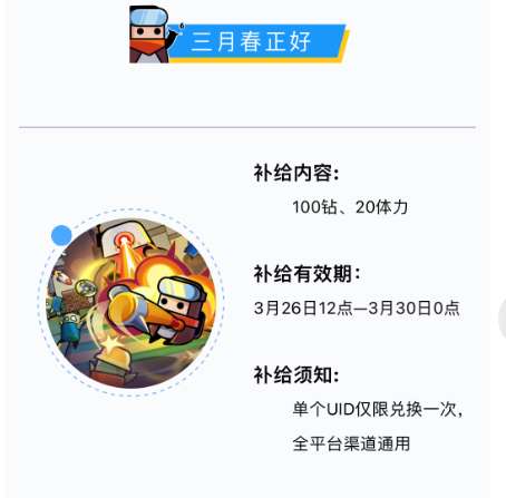 补给须知:单个UID仅限兑换一次,全平台渠道通用