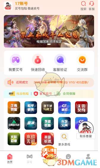 2、在首页即可浏览不同热门游戏的账号,不同等级、不同玩法都有展示。