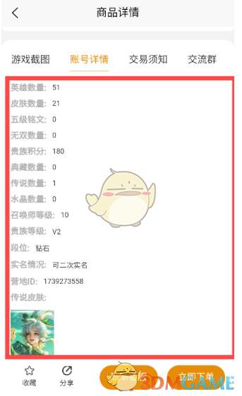 4、挑选到心仪的账号后,直接点“立即下单”就能进入购买流程,操作一点也不复杂。