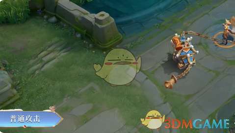 1、普通攻击:角色后方的铁链向前挥动,形成蓝色和金色弧形的攻击路径。