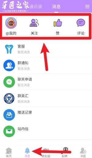 3、消息中心可查看@我的、关注、点赞与评论消息,便于牙医之间进行即时互动与沟通。