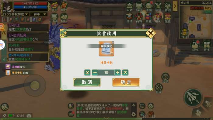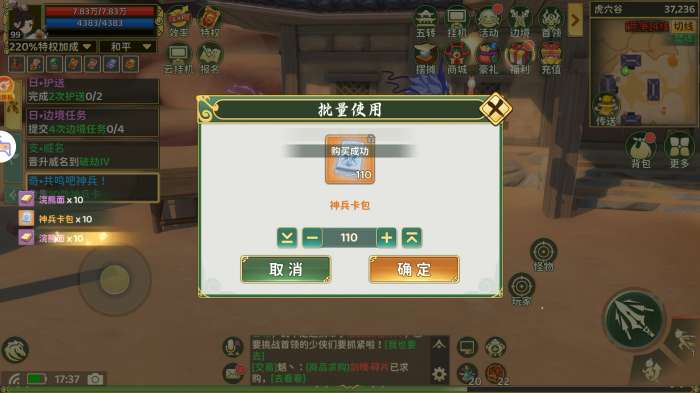 这样就快速完成了收集所有神兵卡的任务,比十包十包拆快多了。